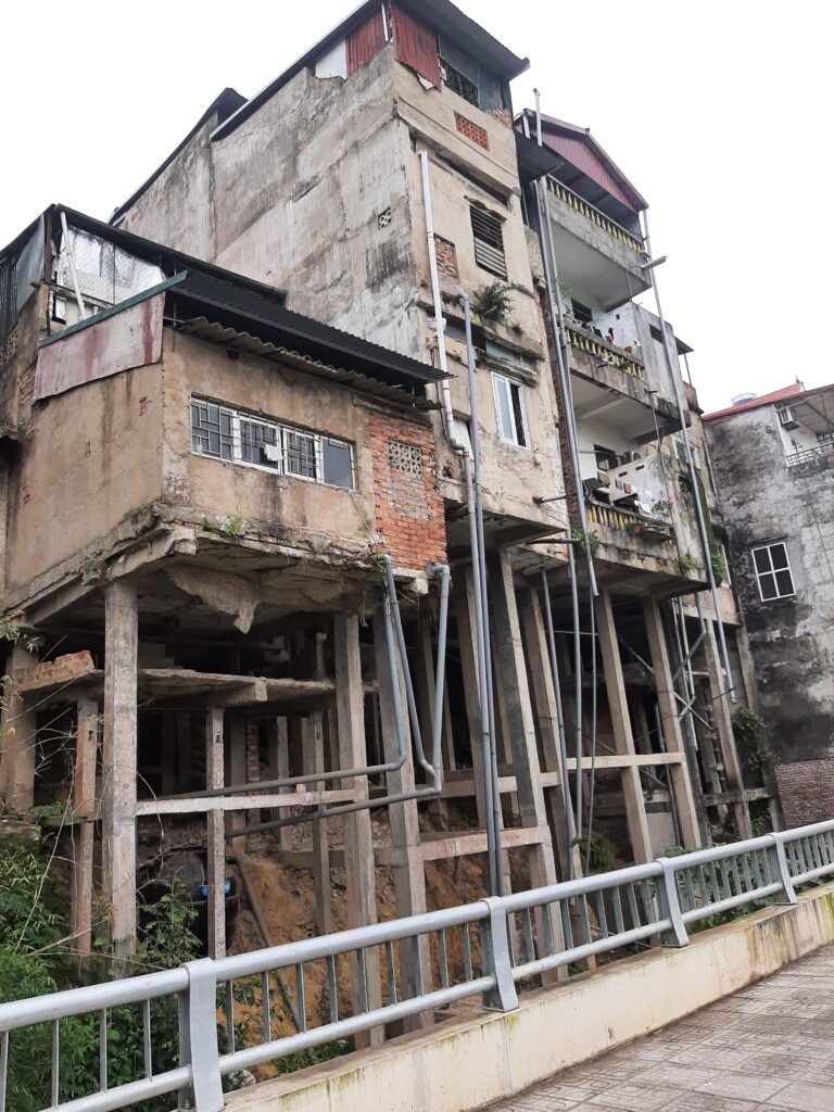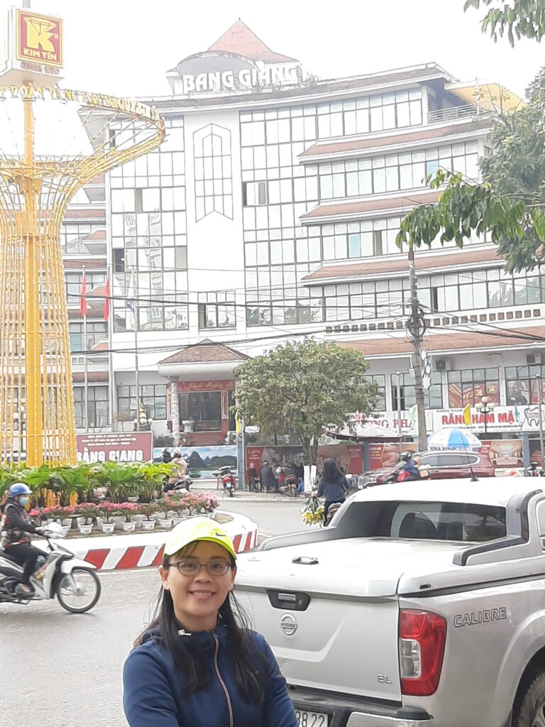 Some buildings definately escaped planning permission and are defying gravity. Right in the centre of town there are the usual fertile veggie smallholdings plus pretty flower and blossom nursuries. Giang was unaware of the full meaning of Bang Giang Hotel. I informed her after taking the photo.