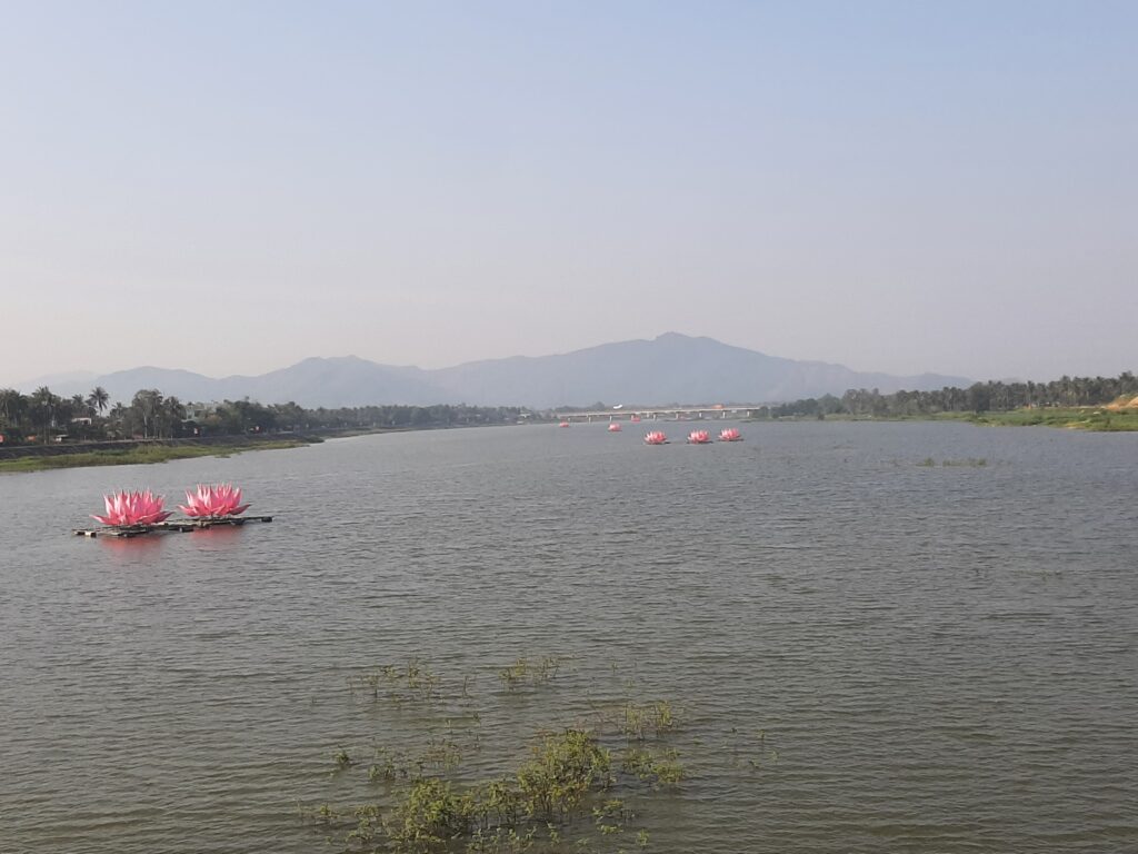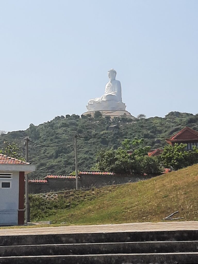 Passing real Reeves of rice and splendid views it was over the undulations to Cat Tien, famous for its enormous gleaming white hillside Budha and its boring, featureless, already decaying new fly-tip coastal road. ZZZZZ so boring.