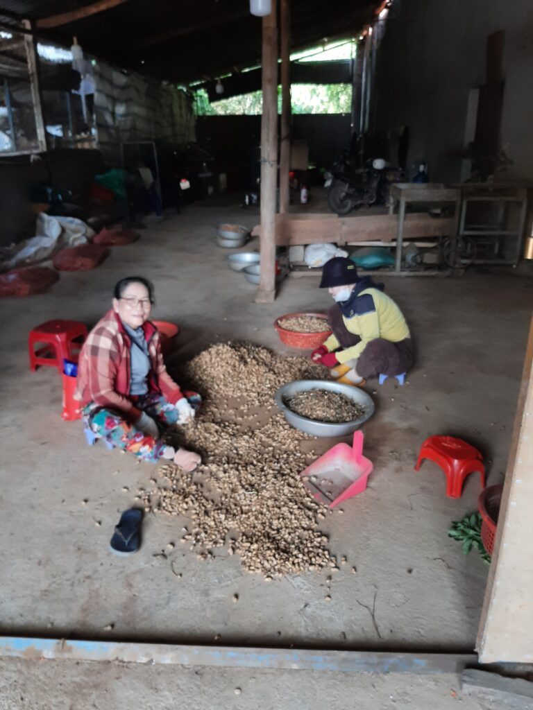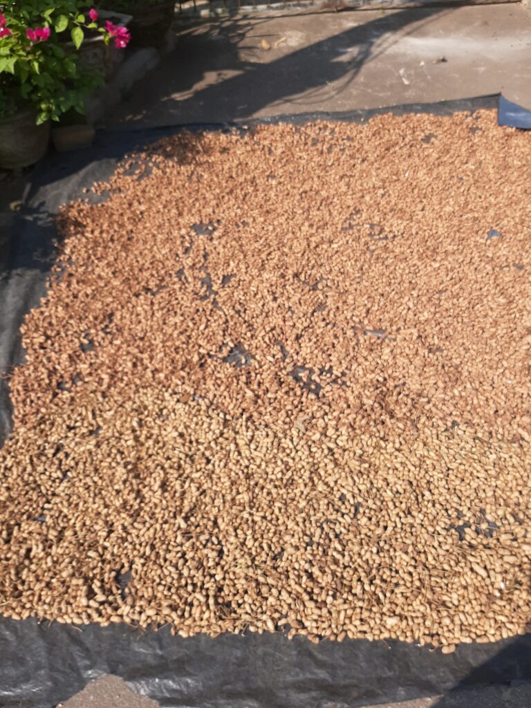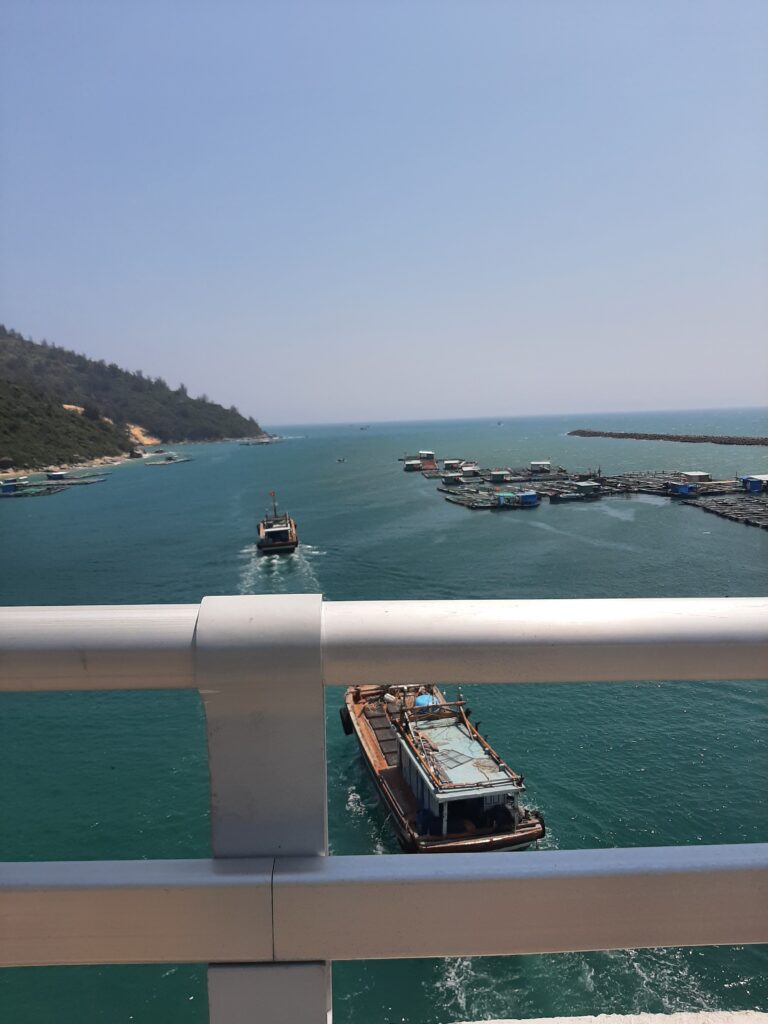 Turning off the highway to the coastal road I stocked up on fruits and an icey drink made by the grocery family Aloe Vera balls and leaves Nuoc. Delicious. I also saw fresh peanuts being dried and copying my mum I tested / scrumped was here word some for free – stealing Dane. A little later I spotted some fold in a barn with peanuts drying outside. Just half a kilo – I needed to get the poly bag back and reduce the 3kg he’d already forced in. I got excessive raw red and white peanut allergy in the Philippines because one time I excelled & ate 8 litres of them, measured in old paint-cans at the stall. I got a good price because they were cousins of my neighbour in Panaksama Beach, Moalboal, Cebu who had a daughter they wanted married off – shopping is so complicated. The Dr just said stop eating peanuts. Luckily I only paid peanuts for his useless advice.
