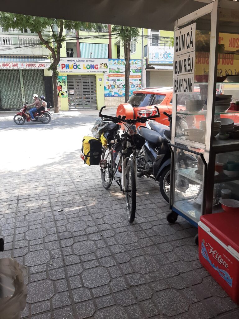 Nice start to the day breakfast Bang My and water on my doorstep next to Pennywise the Poodle. Turn off the highway onto a newly surfaced road and, a few along was a delightful coffee shop in a fishing village wow 22km in first hour.